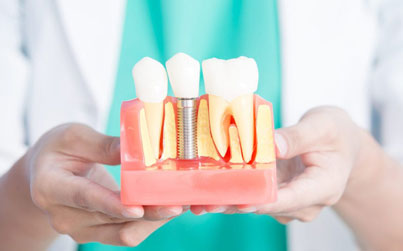 Dental implants are a quick efficient solution to replace a missing tooth. A bridge requires cutting on adjacent healthy tooth structures or removing good crowns to close the space. Research shows a dental bridge has an average life span of 10 years and replacement becomes complicated when a bridge fails. A dental implant is maintained well, can last a life time.